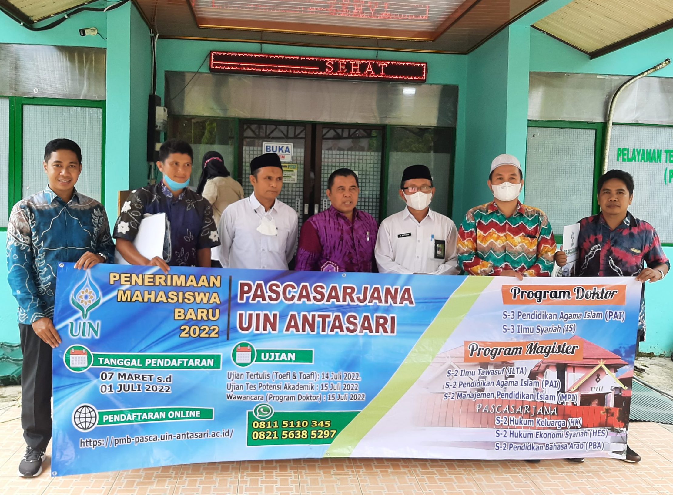 Senin (21/03/2022) Rombongan Pascasarjana UIN Antasari Banjarmasin melakukan kunjungan silaturahmi sekaligus sosialisasi Penerimaan Mahasiswa Baru (PMB) Pascasarjana UIN Antasari Banjarmasin T.A. 2022/2023 ke STAI Al Washliyah Barabai dan Kementerian Agama Kabupaten Hulu Sungai Tengah.