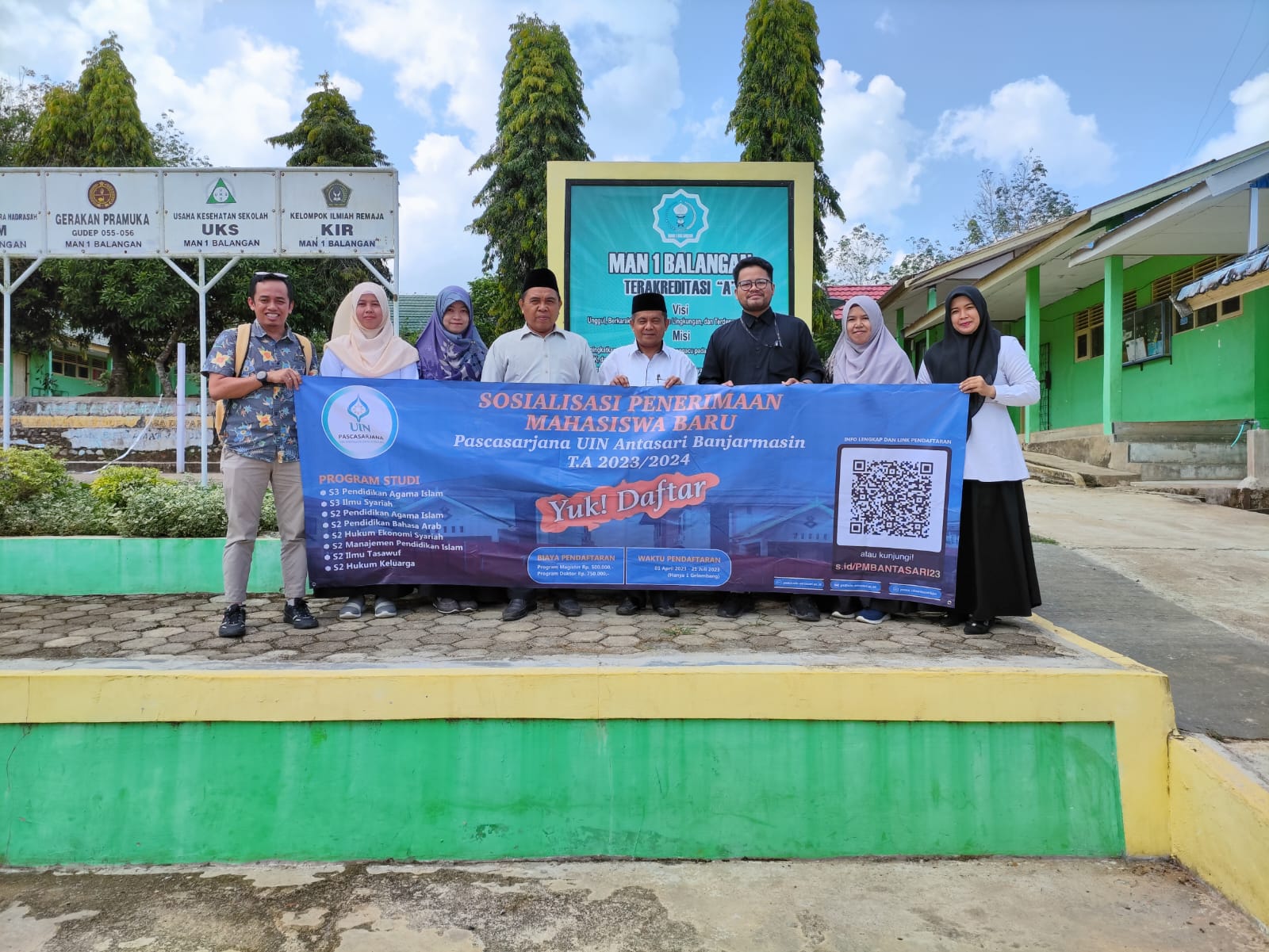 Dalam hal meningkatkan SDM guru-guru MAN Balangan, Prodi Magister Pendidikan Agama Islam (PAI) Pascasarjana UIN Antasari Banjarmasin melaksanakan sosialisasi Peneriamaan Mahasiswa Baru (PMB) tahun 2023-2024 di sekolah MAN 1 Balangan dan MAN 2 Balangan. Tim sosialisasi diketuai oleh ketua Prodi Magister PAI PPS UIN Antasari Dr. M. Ramli, M. Pd disambut langsung oleh kepala sekolah MAN tersebut.