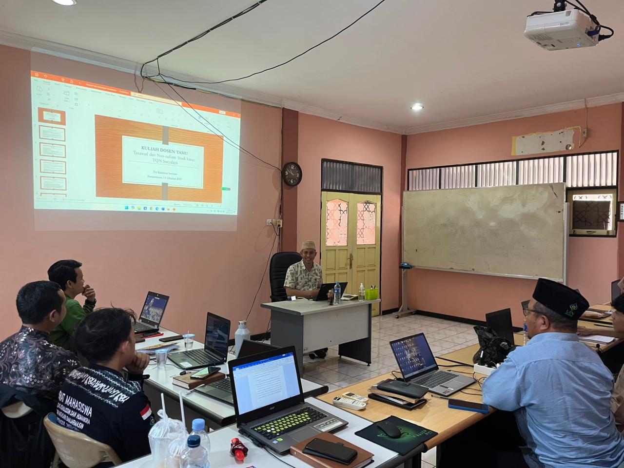Kegiatan ini menghadirkan Dr. Try Riduwan Santoso, M.A., Ketua Program Studi S-2 Ilmu Tasawuf Institut Agama Islam Latifah Mubarokiyah (IAILM) Pondok Pesantren Suryalaya, sebagai narasumber utama. Acara dilaksanakan di ruang perkuliahan Pascasarjana dan diikuti oleh mahasiswa Magister Ilmu Tasawuf serta dosen pengampu mata kuliah terkait.