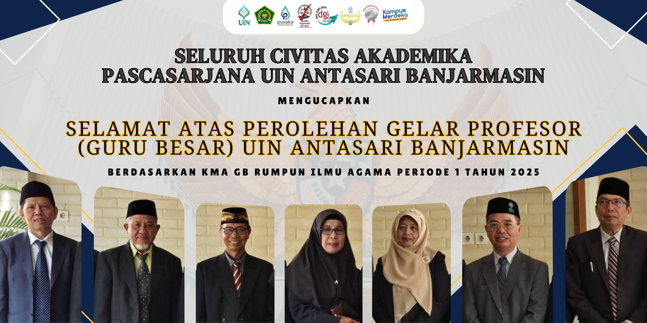 Pada tanggal 23 Oktober 2025 di Ruang Rapat Rektorat Lt. 3. Ada 7 orang dosen yang mendapatkan gelar Profesor ( Guru Besar ) di UIN Antasari Banjarmasin yang sebagai berikut :