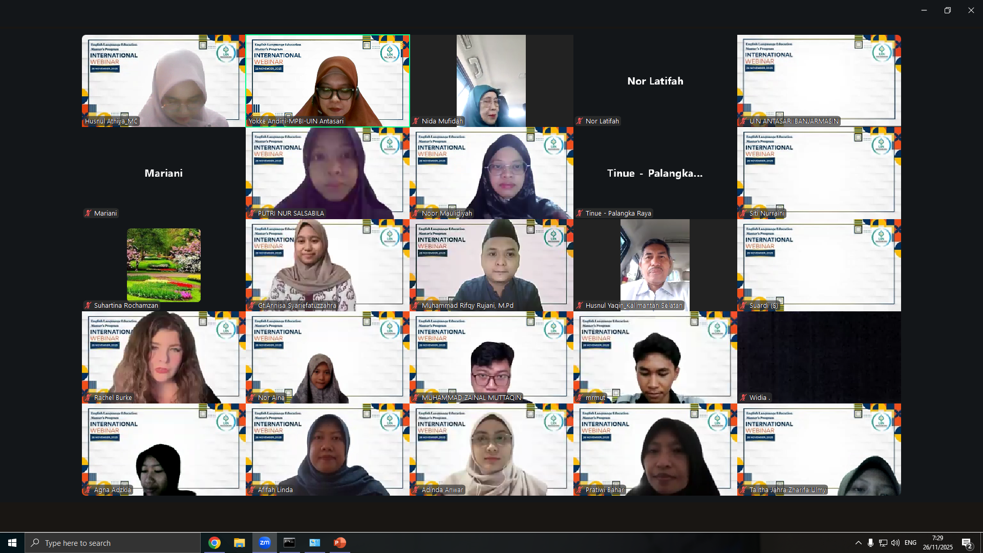 Banjarmasin, 26 November 2025 — Program Studi Magister Pendidikan Bahasa Inggris (S2 PBI) Pascasarjana Universitas Islam Negeri Antasari Banjarmasin baru saja menyelenggarakan International Webinar yang sukses menarik perhatian akademisi, peneliti, dan praktisi pendidikan. Webinar dengan tema “Becoming Competent English Language Education Researchers in the Age of Artificial Intelligence” ini berlangsung pada hari Rabu, 26 November 2025, melalui platform Zoom dan dihadiri oleh ratusan peserta.